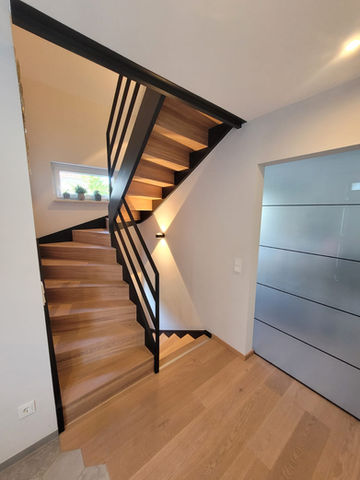 Die Wangentreppe ist nicht zwingend an Wände gebunden und kann somit auch an Wandfreien stellen eingesetzt werden.